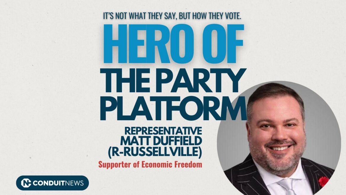 Based on his votes and the legislation he has filed while serving in Little Rock, Rep. Duffield has been a leading limited-government conservative. He ranked near the top of the 2025 Conduit for Commerce legislative scorecard (#6 overall) and was recognized as a Conduit Calvin Coolidge Hero of Freedom.